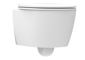 - Cuvette suspendue en céramique 100% carenée, sans bride et anti-calcaire